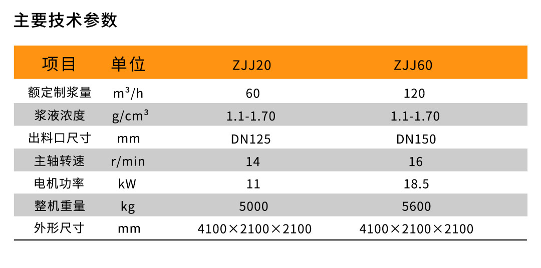 系統(tǒng)主要由:儲(chǔ)料系統(tǒng)、螺旋定量給料機(jī)、膠體制備機(jī)、懸浮劑添加裝置、濾漿機(jī)、潛污泵、攪拌機(jī)、渣漿泵(可選)、電控系統(tǒng)組成。